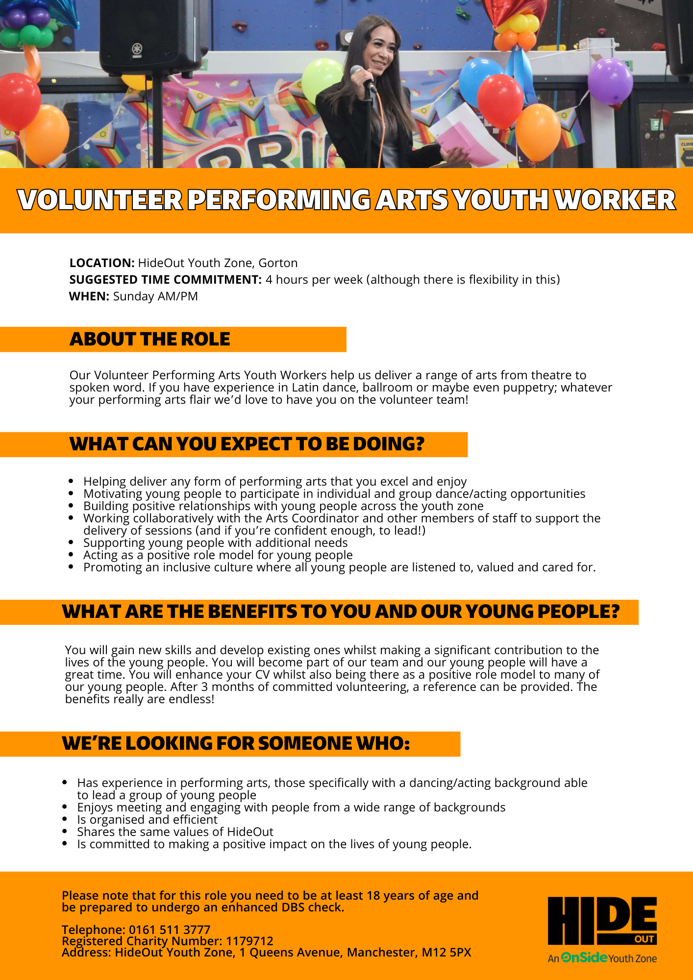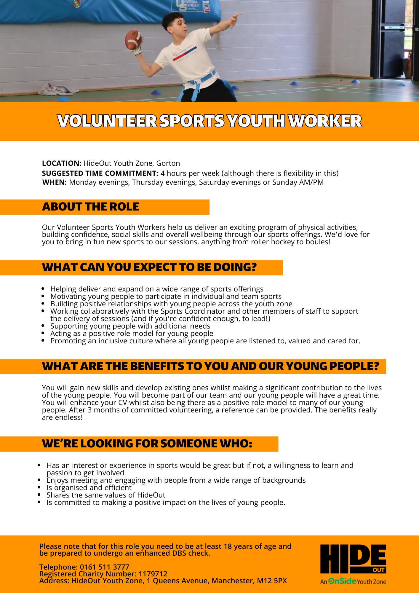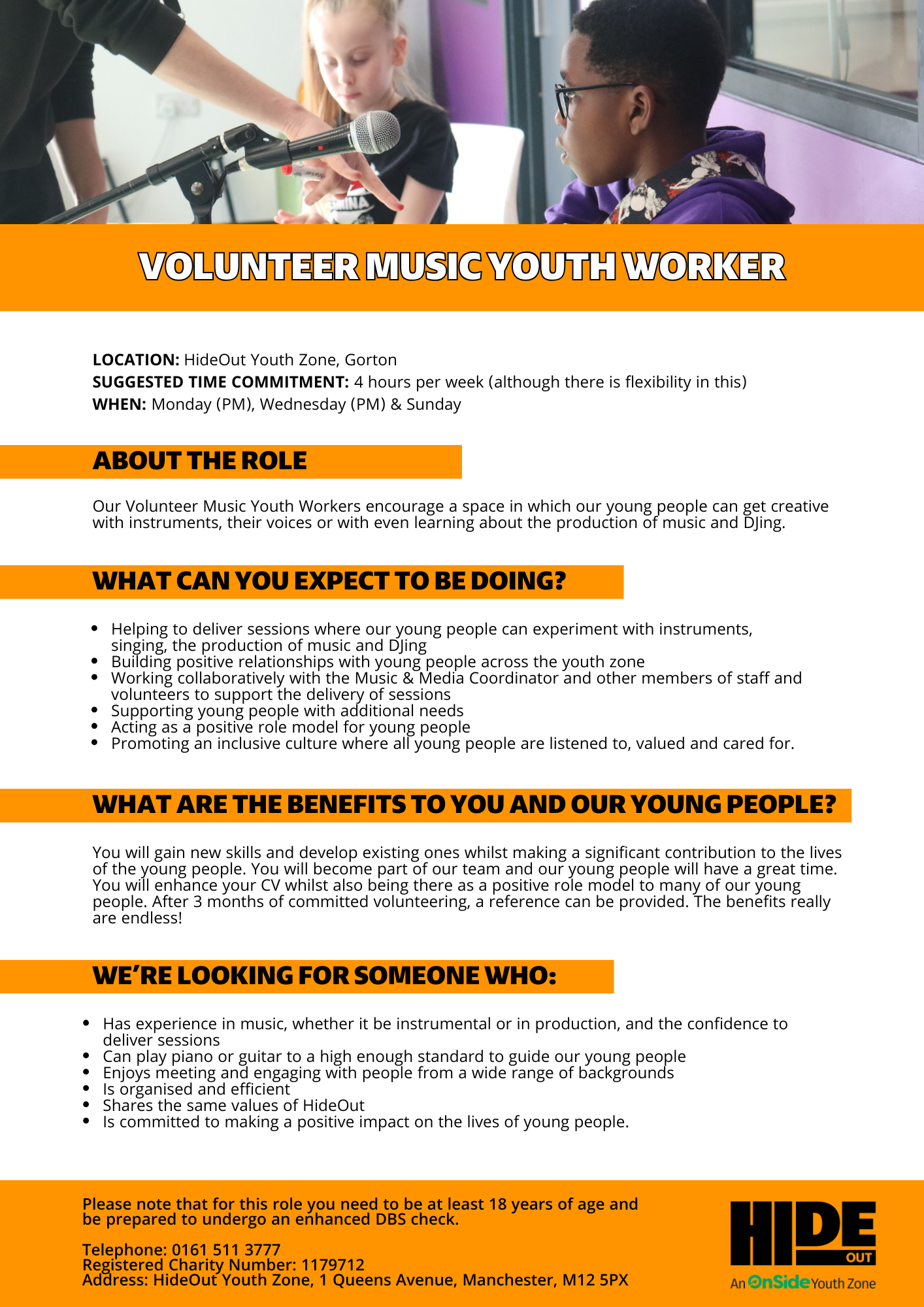 Please note that for this role you need to be at least 18 years of age and be prepared to undergo an enhanced DBS check.